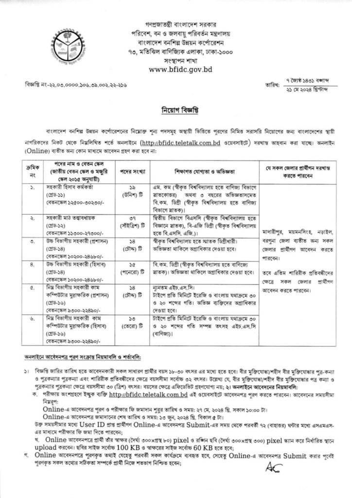 বাংলাদেশ বনশিল্প উন্নয়ন কর্পোরেশন চাকরির বিজ্ঞপ্তি ২০২৪