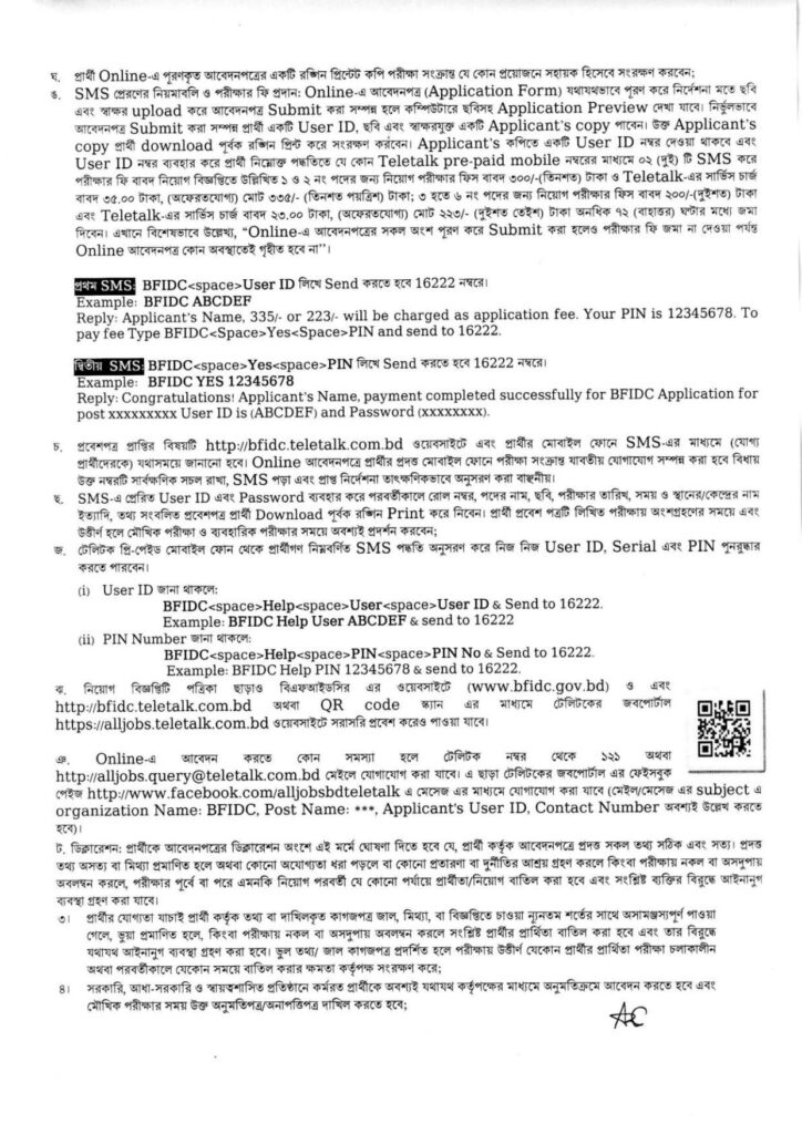 | আবেদনের ওয়েবসাইট: | http://bfidc.teletalk.com.bd |