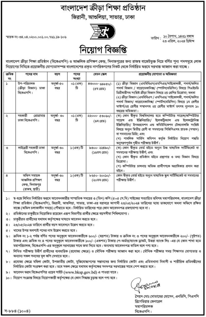 - আপনার অবশ্যই শিক্ষাগত যোগ্যতা এবং অন্যান্য যোগ্যতা থাকতে হবে, যা BKSP জব সার্কুলার ২০২৪ ছবিতে লেখা আছে।