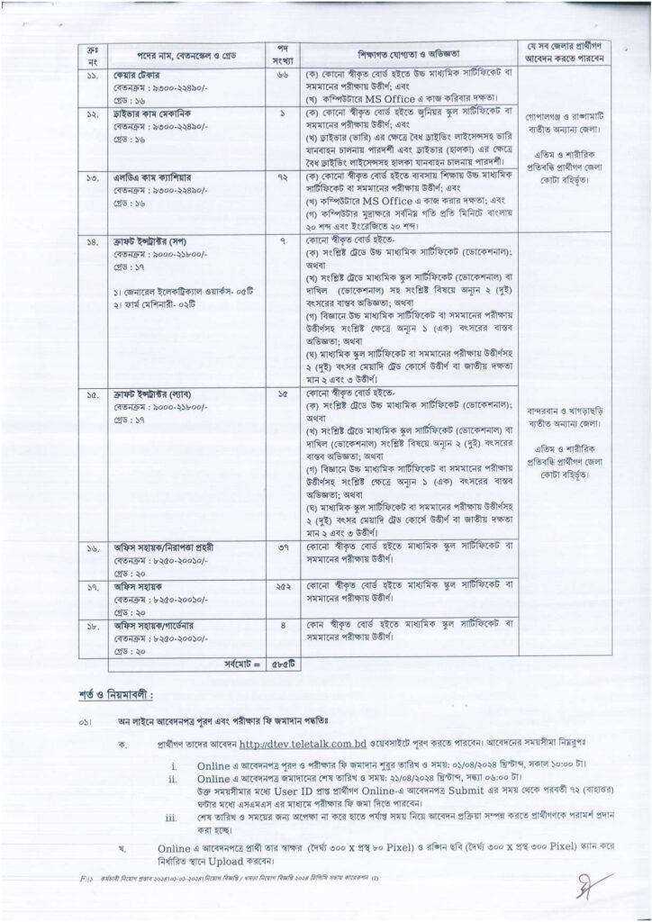 আবেদনের নিয়ম: আগ্রহী প্রার্থীরা অনলাইনে http://dtev.teletalk.com.bd ওয়েবসাইটের মাধ্যমে আবেদন করতে পারবেন।