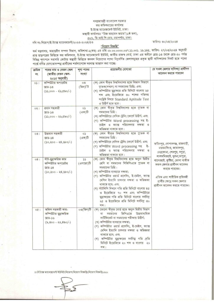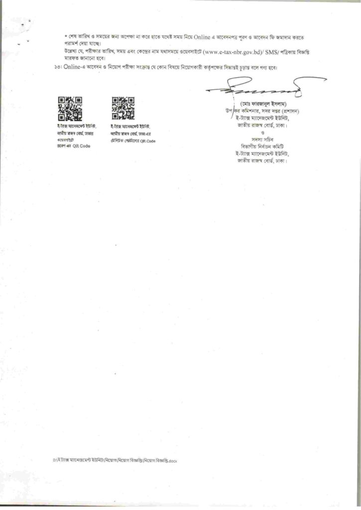 | চাকুরীদাতার নাম | কর কমিশনার, ই-ট্যাক্স ম্যানেজমেন্ট ইউনিট |