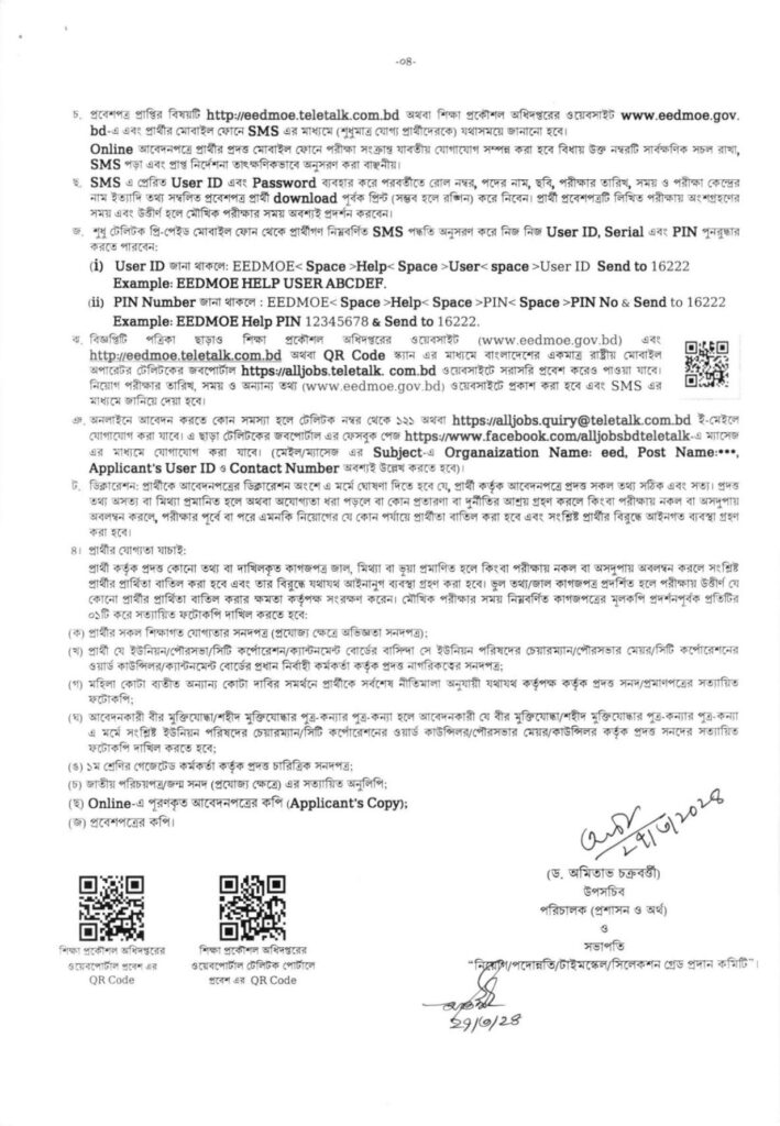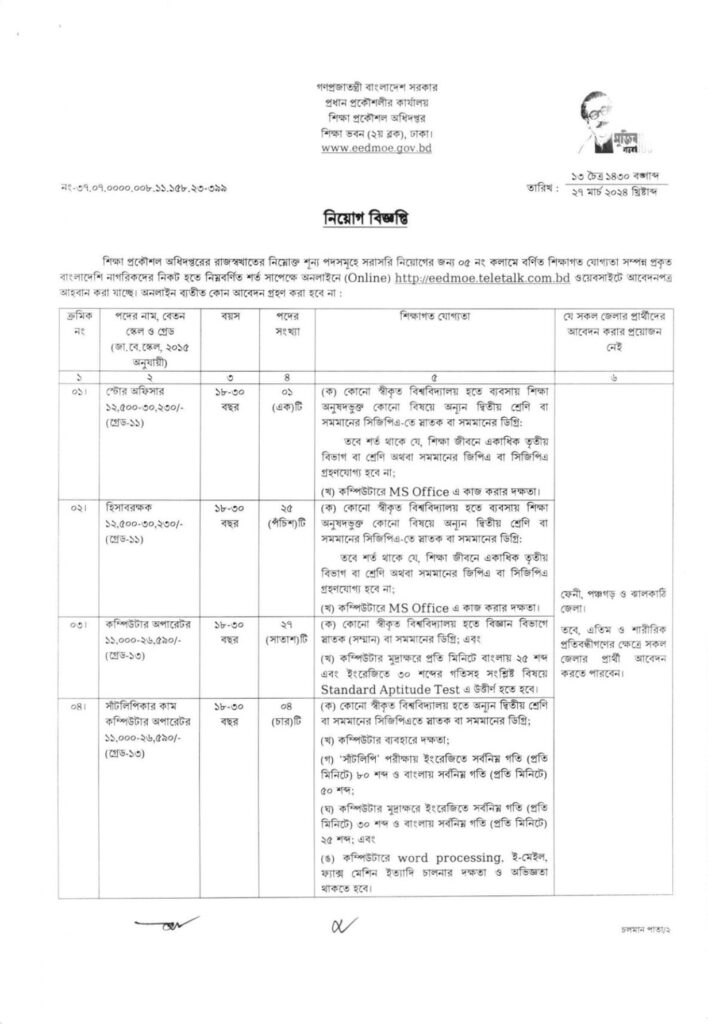 আবেদনের নিয়ম: আগ্রহী প্রার্থীরা অনলাইনে http://eedmoe.teletalk.com.bd ওয়েবসাইটের মাধ্যমে আবেদন করতে পারবেন।