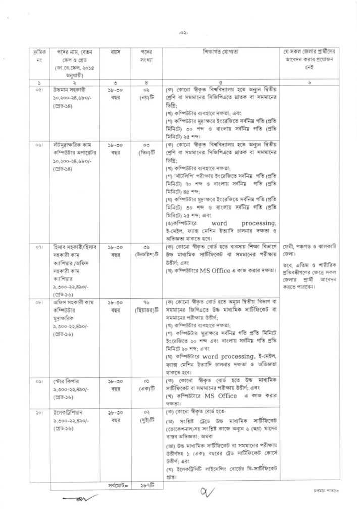 শিক্ষাগত যোগ্যতা : বিজ্ঞান বিভাগে স্নাতক বা সমমানের ডিগ্রী এবং কম্পিউটার টাইপিং-এ প্রতি মিনিটে শব্দের গতি বাংলা ও ইংরেজিতে যথাক্রমে ২৫ ও ৩০।