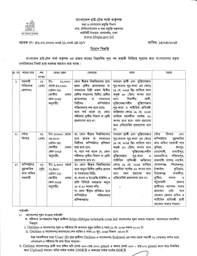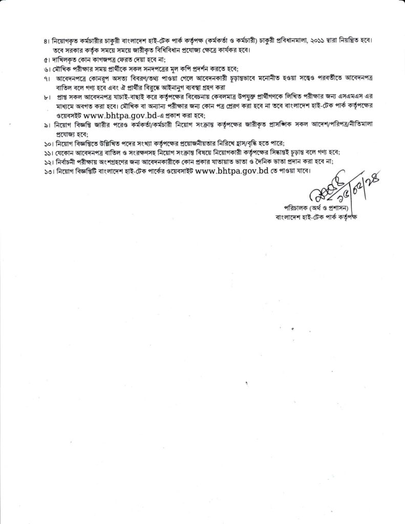 | চাকুরীদাতার নাম | বাংলাদেশ হাইটেক পার্ক নিয়োগ |