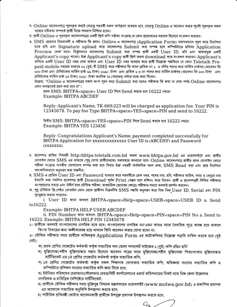 | অনলাইন আবেদনের ওয়েবসাইট | http://bhtpa.teletalk.com.bd/ |