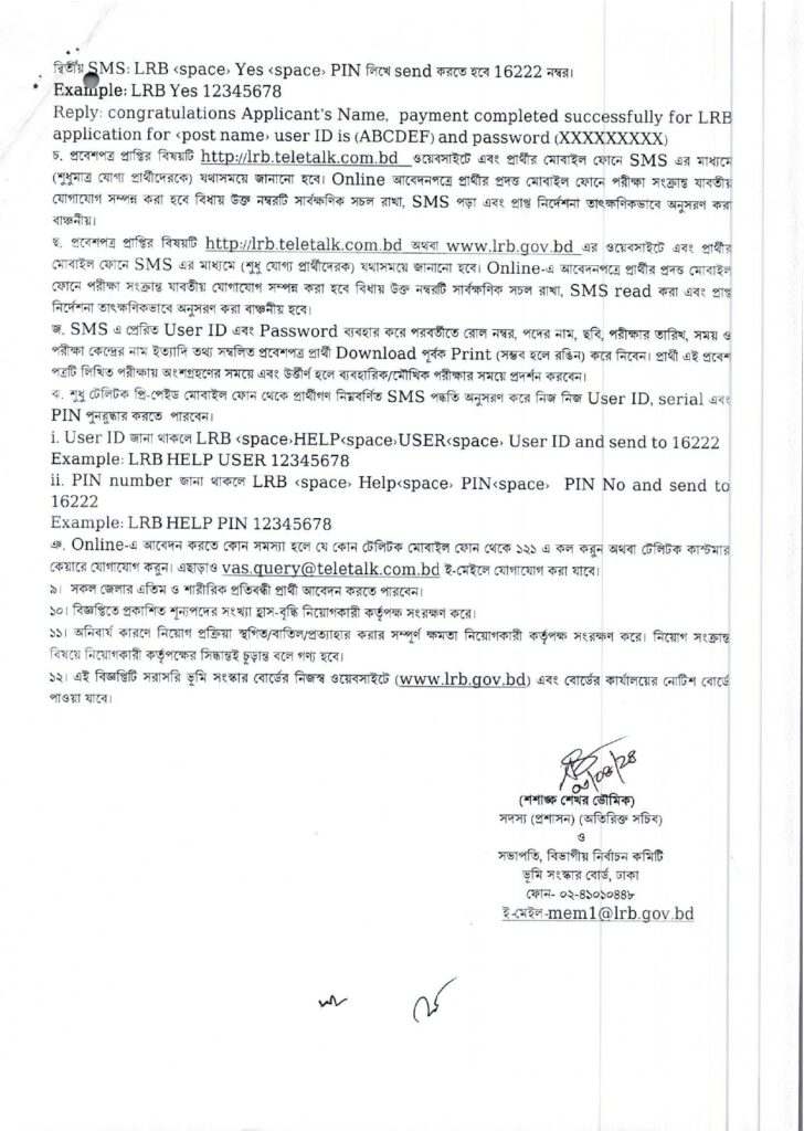 আবেদনের প্রক্রিয়া: সকল প্রার্থীকে অনলাইনে http://lrb.teletalk.com.bd ওয়েবসাইটের মাধ্যমে আবেদন করতে হবে ।