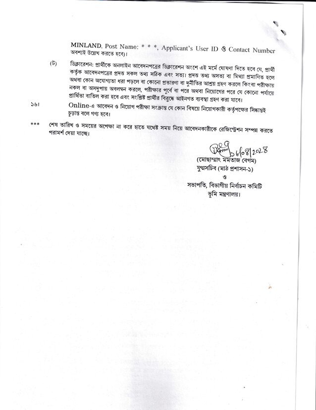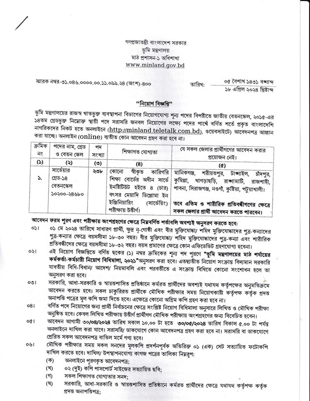 Ministry of Land Job Circular 2024 -এর গুরুত্বপূর্ণ তথ্য