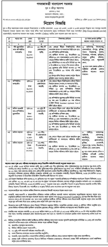 Ministry of youth and sports(MOYS) Job Circular 2024-যুব ও ক্রীড়া মন্ত্রণালয় নিয়োগ বিজ্ঞপ্তি ২০২৪