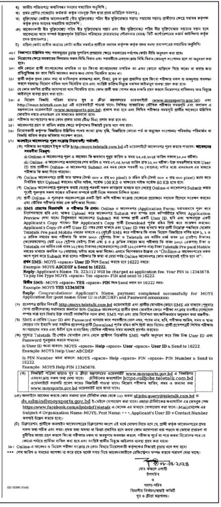 আবেদনের নিয়ম: আগ্রহী প্রার্থীরা অনলাইনে http://moys.teletalk.com.bd ওয়েবসাইটের মাধ্যমে আবেন করতে পারবেন।