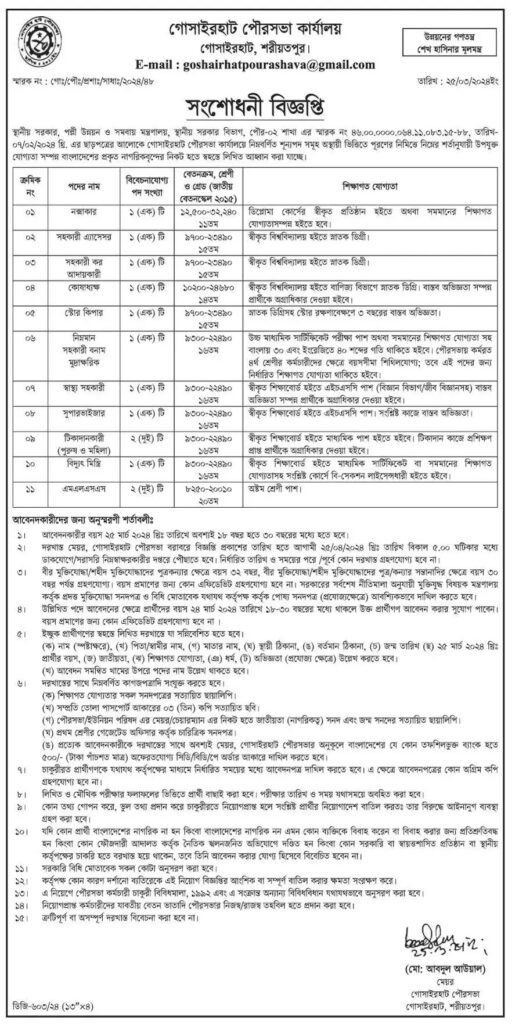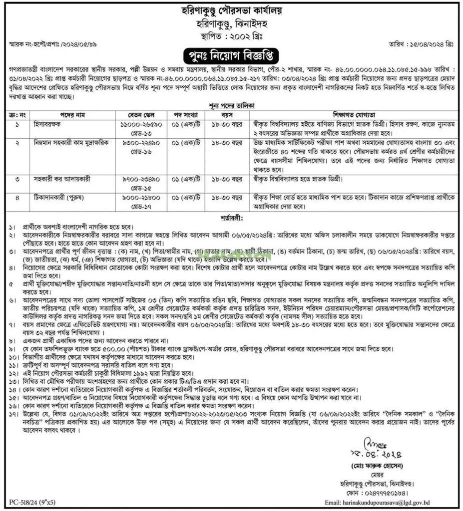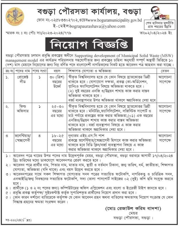 মিউনিসিপ্যালিটি জব সার্কুলার ২০২৪ ইমেজ অনুযায়ী চাকরির আবেদন সম্পূর্ণ করতে ১০০% নিশ্চিত।