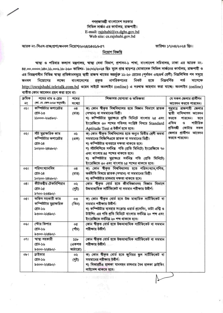 Rajshahi Civil Surgeon Office Job Circular 2024-রাজশাহী সিভিল সার্জন অফিস চাকরির বিজ্ঞপ্তি ২০২৪