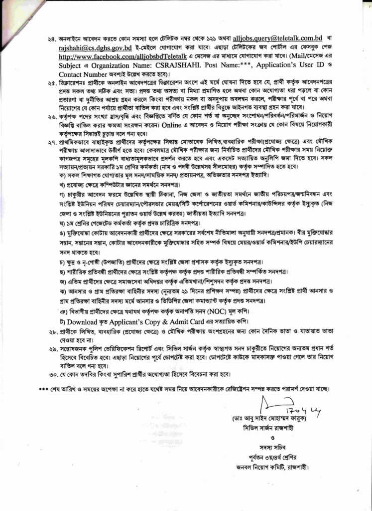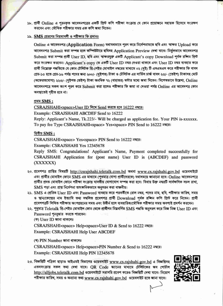 আবেদনের সাইট: http://csrajshahi.teletalk.com.bd