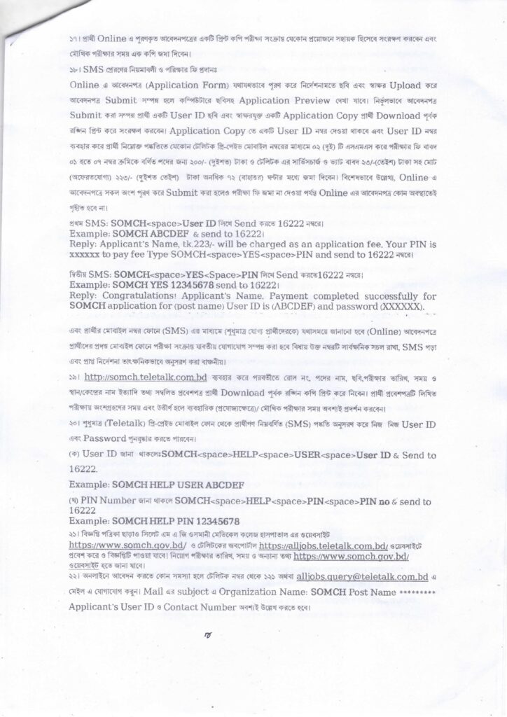 - To apply for the SOMCH job, visit the SOMCH job application website at http://somch.teletalk.com.bd and pay the SOMCH job application fee using only the Teletalk pre-paid mobile number.