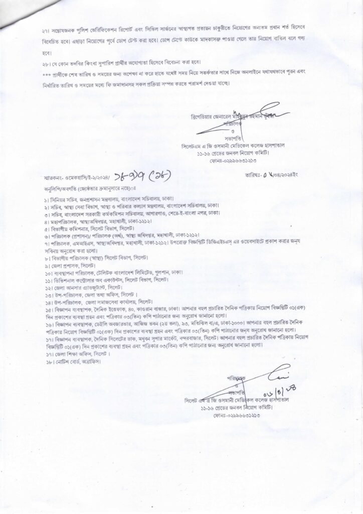 Sylhet MAG Osmani Medical College Hospital Job Important Time & Date