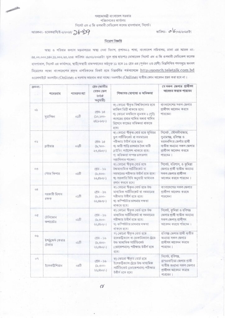 | Job Location | Depends on the Sylhet MAG Osmani Medical College Hospital |