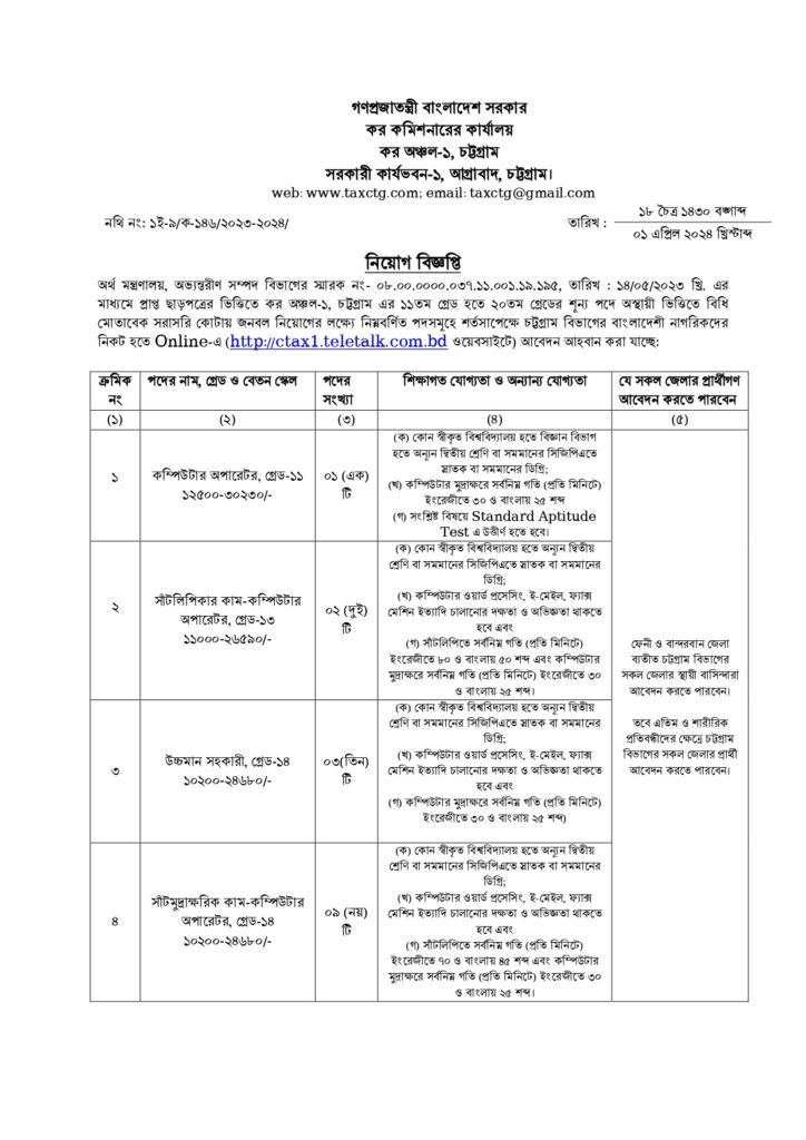 Taxes Zone 1 Chittagong Job Application Eligibility