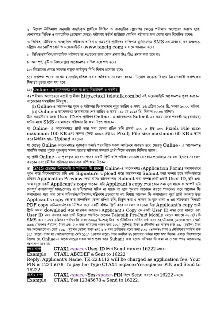 If you have educational qualifications, the right age limit, other qualifications, & interested, then you can apply for this CTAX1 Job Circular 2024.