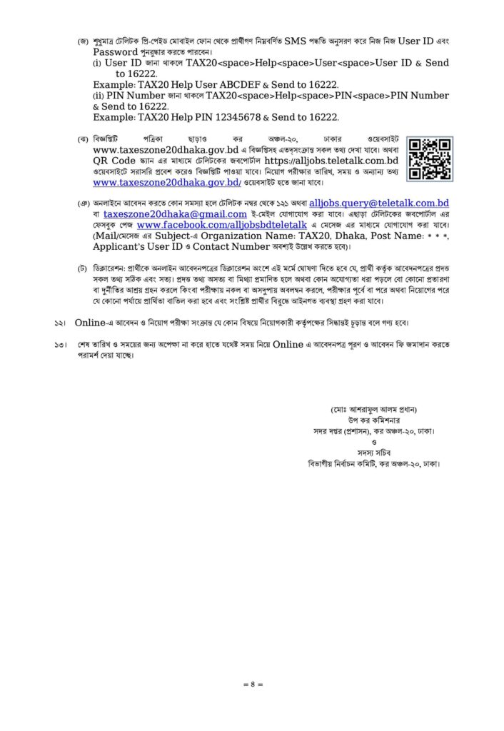 | চাকুরীদাতার নাম | কর অঞ্চল – ২০ ঢাকা ট্যাক্স ২০ |