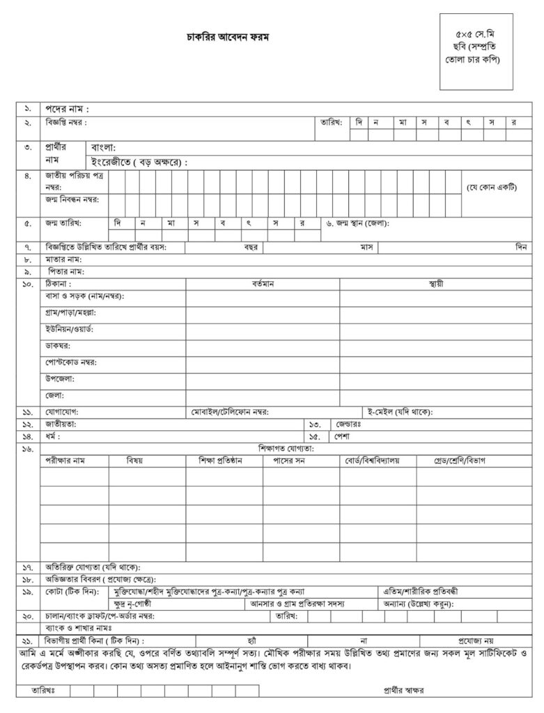 শিক্ষাগত যোগ্যতা : স্নাতক ডিগ্রি অথবা ২য় বিভাগে এইচএসসি পাশ।